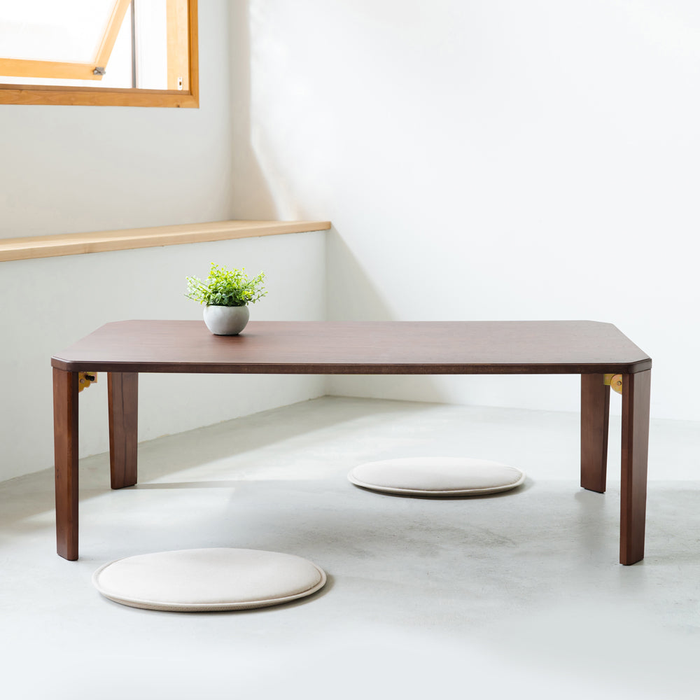 天然木ウォールナット突板を贅沢に使用。天板も脚も同素材で、木の質感と温もりをダイレクトに感じられるローテーブルです。