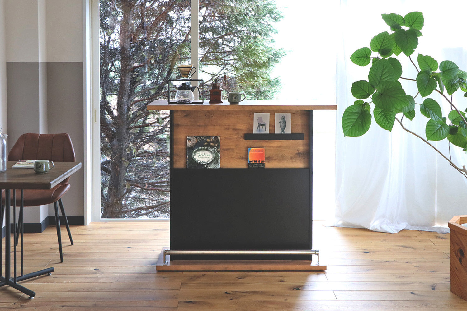 幅120cm×奥行44.5cmのちょうど良いサイズ。ワンルーム〜1LDKでも置ける本格バーカウンターです。