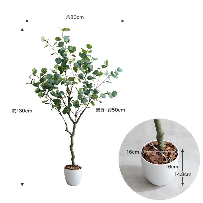 130cmのユーカリが、ワンルーム〜1LDKにちょうど良い存在感。丸みのある葉で生活感を抑え、モノトーン空間に馴染みます。