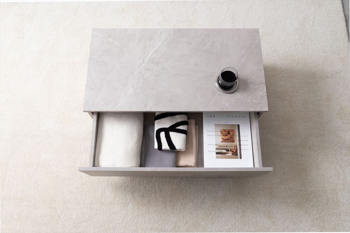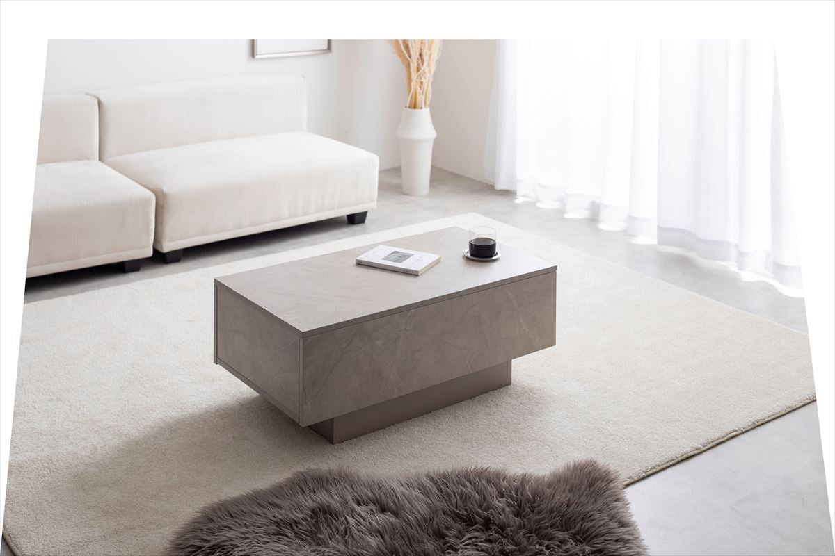 ストーン柄のニュアンスが上質な空間を作る『Sincere(シンシア)』引き出し付きセンターテーブル