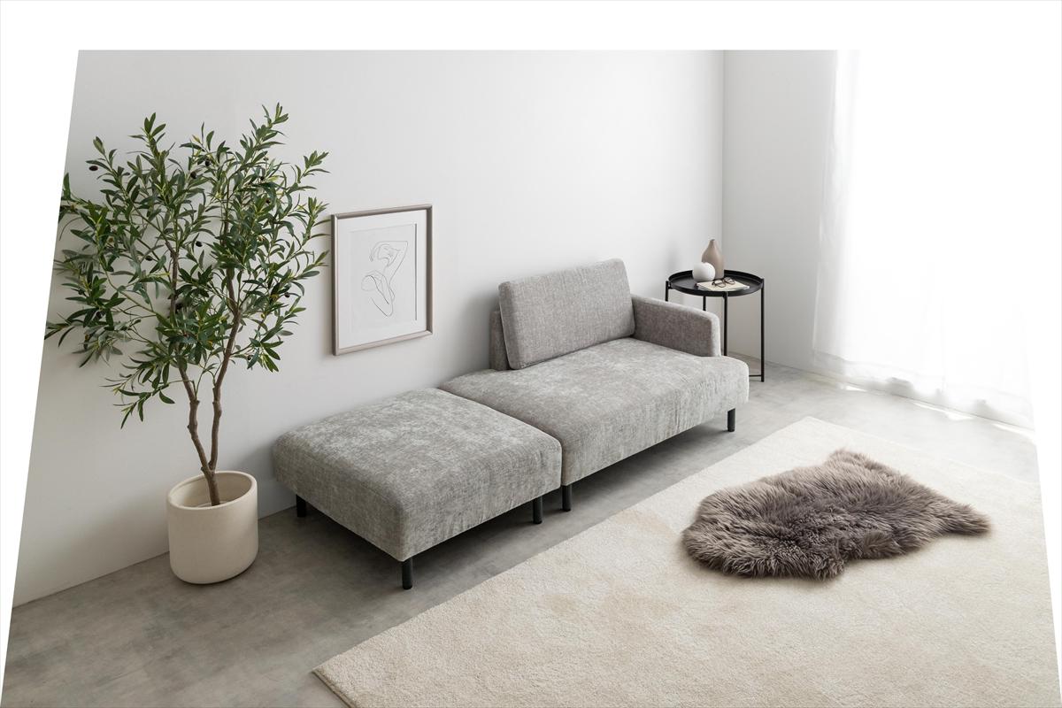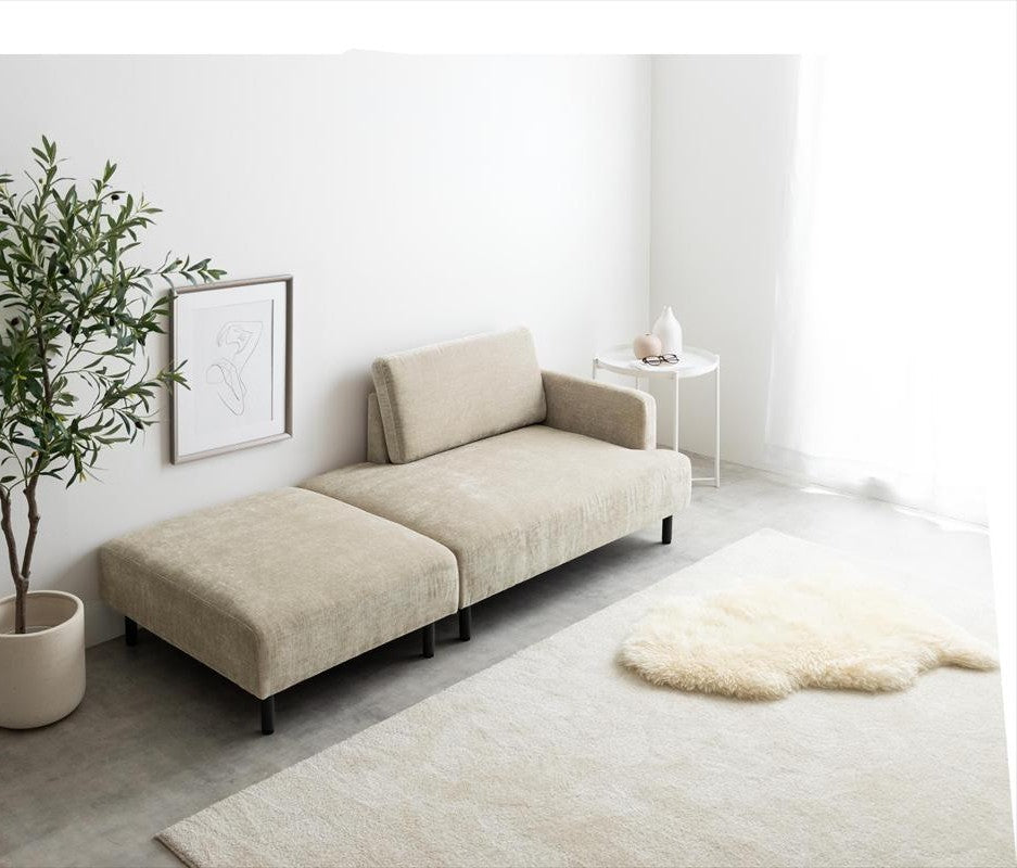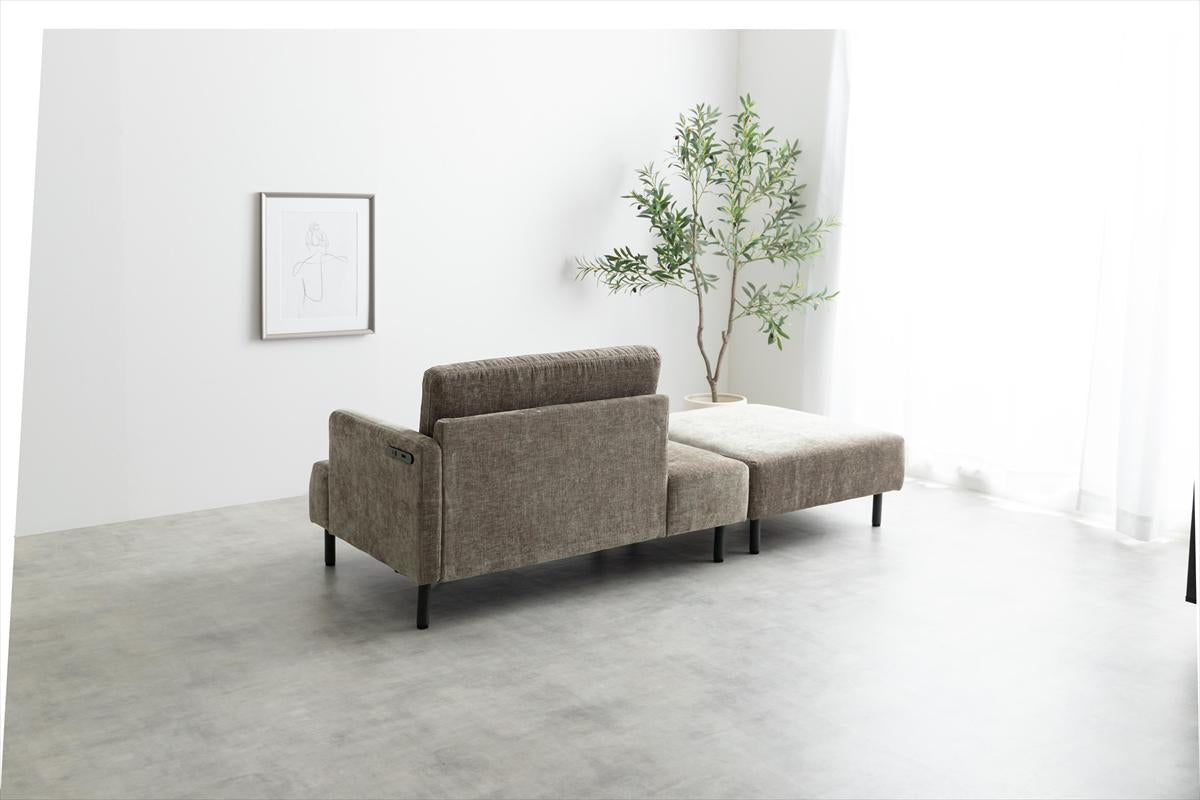 広々座面でゆったりくつろげるコンセント・オットマン付き2人掛けソファ